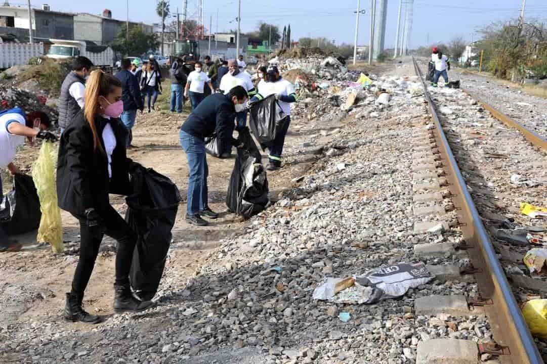 Cerca de 1,200 metros a ambos lados de la vía férrea fueron limpiados por un contingente de más de 100 personas, trabajadores de la dependencia estatal y de la Secretaría de Servicios Públicos de San Nicolás.