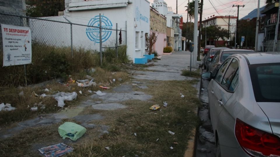 En las banquetas e incluso en las mismas calles de Matamoros, Gral. Naranjo, Mina, Dr. Coss, paseo peatonal Morelos, Padre Mier, Diego de Montemayor y Juan Ignacio Ramón pudimos observar como hay bolsas de basura regada, como papeles, botellas de plástico y sobre todo la gran presencia de recipientes desechables de comida.